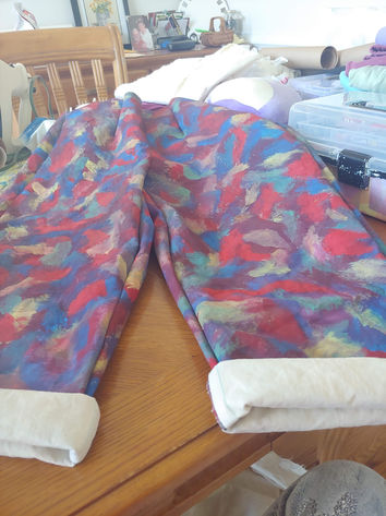 My collection, Brushed Bark, is a two-piece collection consisting of a shirt and a pair of pants. My inspiration came from a painting by Shara Hughes that is housed at the North Carolina Museum of Art. I worked to capture her technique of building on layers with my multi-layered patterns. This collection was created with basic fabric and acrylic paints.